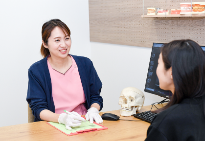 資料を元に現在のお口の状態、症状の原因、これからどのように変化していくかなどを説明し、患者さまとしっかりと相談しながらそれぞれに合った、最善、最短の治療を決めていきます。