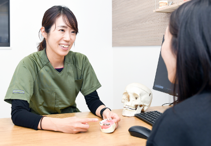 当院では、カウンセリングを最も大切にしています。現在お困りのことや、治療に対するご希望をお伺いいたします。些細なことでも気軽にお話しください。また、はじめてのお子さまに関しては、まずは院内の雰囲気に慣れてもらうことからはじめます。