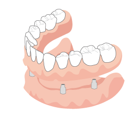 インプラントオーバーデンチャーとは、外科手術によって、顎の骨に埋め込んだ2~4本のインプラントを土台とし、その上から入れ歯を固定させる治療法です。